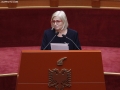 Deputetja Ina Zhupa duke folur gjate nje seance parlamentare. Gjate saj jane disktuar problematikat e zgjedhesve.