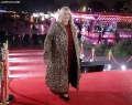 Megi Doci outside the premises of the Opera and Ballet Theater for the 2025 Golden Ball ceremony, where the best footballers of the year will be honored.