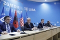 Kryetari i PD, Sali Berisha dhe deputetet Edi Paloka, Flamur Noka, Gazment Bardhi dhe Agron Gjekmarkaj gjate nje mbledhjeje te kryesise se PD. Mbledhja e mbajt nje dite pas tensioneve ne parlament. Gjate mbledhjes, Kryetari Sali Berisha ka deklaruar se protestat do te vazhdojne.