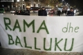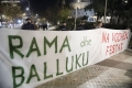 Anetare te Levizjes Bashke dhe qytetare duke protestuar me pankarta para parlamentit. Protestuesit kane kerkuar heqjen e imunitetit te zv/kryeministres Belinda Balluku