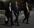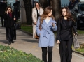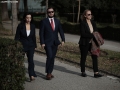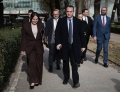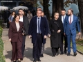 MPS AND MINISTERS OUTSIDE OF PARLIAMENT - MPs Jorida Tabaku and Elda Hoti outside parliament. Opposition MPs had warned of tensions while demanding the resignation of Deputy Prime Minister Belinda Balluku.