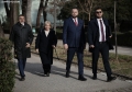 MPs Luciano Boci and Bardh Spahia outside the parliament premises. Opposition MPs had warned of tensions while demanding the resignation of Deputy Prime Minister Belinda Balluku
