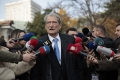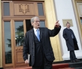 Kryetari i partise demokratike, Sali Berisha jashte ambienteve te parlamentit pas nje seance parlamentare. Gjate seances, ka pasur tensione dhe deputetet e opozites kane bllokuar seancen.