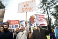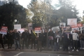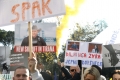 PROTEST OF THE MUNDESIA PARTY - The leader of the Mundesia party, Agron Shehaj, members and supporters of this party with banners in their hands during a protest in front of the parliament headquarters. The protesters have demanded the lifting of the immunity of Deputy Prime Minister Belinda Balluku