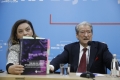 Kryetari i PD, Sali Berisha dhe deputetja Albana Vokshi gjate nje konference per shtyp ne ambientet e selise se PD. Gjate konference eshte prezantuar nje botim i dyte permbledhes me akuzat e PD per vjedhjen e zgjedhjeve 2025
