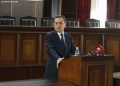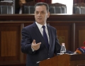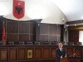 SOKOL SADUSHI NE KONFERENCE - Kreu i Gjykates se Larte, Sokol Sadushi duke folur gjate nje konference per shtyp. Gjate konferences, Sadushi ngriti si shqetesim numrin e ulet te gjyqtareve dhe prokuroreve ne sistem, si dhe reduktimin e pranimeve te magjistrateve te rinj, duke fajesuar per mungese vizioni qeverine, Keshillin e Larte Gjyqesor dhe Keshillin e Larte te Prokurorise.