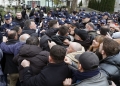 Kryetari i partise Shqiperia Behet, Adriatik Lapaj, protestues dhe forca policore ne nje moment perplasjeje gjate nje proteste para kryeministrise ne Tirane. Gjate saj, protestuesit kane kerkuar doreheqjen e kryeministrit Edi Rama.