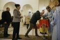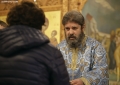 MESHA E UJIT TE BEKUAR - Kryepeshkopi i i Kishes Ortodokse Shqiptare, Joan Pelushi dhe nje besimtar gjate gjate meshes se dites se Ujit te Bekuar. Permbytjet e diteve te fundit nuk e kane bere te mundur ceremonine e hedhjes se kryqit.