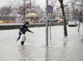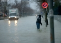 Nje burre kalon nje rruge te permbytur ne Durres. Rreshjet e dendura kane shkaktuar permbytje te rrugeve, probleme me trafikun, ndersa uji ka hyre ne apartamente dhe dyqane.