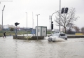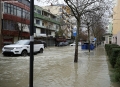 PERMBYTJE NE DURRES - Nje grua kalon nje rruge te permbytur ne Durres. Rreshjet e dendura kane shkaktuar permbytje te rrugeve, probleme me trafikun, ndersa uji ka hyre ne apartamente dhe dyqane.