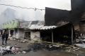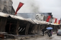 PASOJAT E ZJARRIT NE TREGUN E 5 MAJIT - Nje grua ecen me nje thes dhe qese ne duar ne afersi te tashme ish tregut te tregun e Ish Uzines Dinamo (5 Maj). laket kane perfshire 100 subjekte, ndersa nuk jane raportuar lendime ne njerez. Policia ka raportuar se zanafilla ka qene nje shkendije elektrike