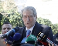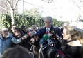 Kryetari i Partise Demokratike, Sali Berisha duke folur per gazetaret pasi ka dale nga ambientet e SPAK. Para seances Berisha eshte pershendetuar nga disa mbeshtetes.