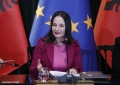 Ministrja e shtetit dhe Kryenegocitarja e Shqiperise per hyrjen ne BE, Majlinda Dhuka duke folur gjate nje konference per shtyp, ku eshte prezantuar paketa ligjore ne kuader te negociatave per hyrjen ne BE.