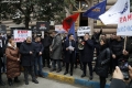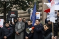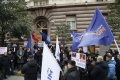 Protestues me flamuj gjate nje proteste te partise Mundesia para kuvendit te parlamentit. Gjate saj ata kane kerkuar gjykimin e zv/kryeministres Belinda Balluku.