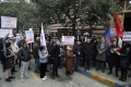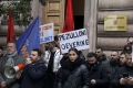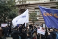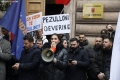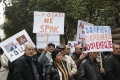 Protestues me pankarta gjate nje proteste te partise Mundesia para kuvendit te parlamentit. Gjate saj ata kane kerkuar gjykimin e zv/kryeministres Belinda Balluku.