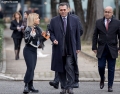 Deputetet Bledjon Nallbati dhe Jorida Tabaku duke hyre ne ambientet e parlamentit, para nje seance parlamentare.