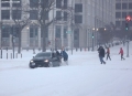 Residents push a car stuck in the snow near the. U.S. Capitol Hill, during a winter storm in Washington, DC, on January 25, 2026. A massive winter storm is bringing a mix of freezing rain and heavy snow to some 160 million Americans starting January 23, threatening dangerously icy conditions. Multiple US states declared states of emergency as meteorologists said the storm began marching across much of the continental US, covering a wide swath of the country's middle, including the Rockies and Plains.