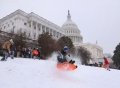 People sled down the U.S. Capitol Hill during a winter storm in Washington, DC, on January 25, 2026. A massive winter storm is dropping a mix of freezing rain and heavy snow on some 160 million Americans starting January 23, threatening to bring dangerously icy conditions. Multiple US states declared states of emergency as meteorologists said the storm began marching across much of the continental US, covering a wide swath of the country's middle, including the Rockies and Plains.