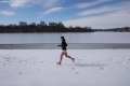 A woman runs next to the frozen Potomac River as snow blankets Washington, DC, USA, on January 27, 2026. A monster storm barreling across the United States had killed at least 11 people on Monday, prompting warnings to stay off the roads, mass flight cancellations, and power outages after a weekend of misery. The storm dumped snow, sleet, and freezing rain across swathes of the country from Texas to New England, with temperatures set to fall dangerously low this week.