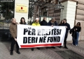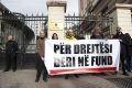 Aktiviste te Qendres Qytetare duke mbajtur nje pankarte para Kryesise se Kuvendit, gjate nje proteste kur kane kerkuar heqjen e Imunitetit se Zv/kryeministres Belinda Balluku