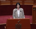 Deputeteja Greta Bardeli duke folur gjate nje seance parlamentare. Gjate seances, u miratuan tete projektligje dhe nje projektvendim