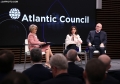Ministrja per Evropen dhe Punet e Jashtme e Shqiperise, Elisa Spiropali dhe Ambasadori Philip Reeker gjate nje paneli diskutimi ne Keshillin e Atlantikut mbi Perspektivat Gjeopolitike te Zgjerimit te BE ne Ballkanin Perendimor, i moderuar nga gazetarja Ilva Tare, ne Washington, DC, SHBA, ne 5 shkurt 2026.