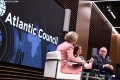Ministrja per Evropen dhe Punet e Jashtme e Shqiperise, Elisa Spiropali duke folur gjate nje paneli diskutimi ne Keshillin e Atlantikut mbi Perspektivat Gjeopolitike te Zgjerimit te BE ne Ballkanin Perendimor, ne Washington, DC, SHBA, ne 5 shkurt 2026.
