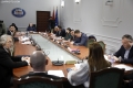 Kryetatari Ulsi Manja gjate nje mbledheje te Komisionit parlamentar per Ceshtjet Ligjore dhe Administraten Publike. Gjate saj u paraqit Deputetja Jorida Tabaku dhe u diskutua rreth statusin te minatorit