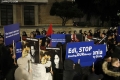 Protestues me pankarta gjate nje proteste te PD para kryeministrise. Gjate protestes, pjesemarresit kane kerkuar doreheqjen e kryeministrit Edi Rama dhe zv/kryeministres, Belinda Balluku.