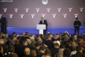 Kryetari i partise demokratike, Sali Berisha gjate nje proteste para kryeministrise. Gjate protestes, pjesemarresit kane kerkuar doreheqjen e kryeministrit Edi Rama dhe zv/kryeministres, Belinda Balluku.