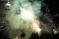 PROTESTE E PD - Protestues duke hedhur fishekzjarre drejt kyeministrise dhe forcave policore gjate nje proteste para kryeministrise. Gjate protestes, pjesemarresit kane kerkuar doreheqjen e kryeministrit Edi Rama dhe zv/kryeministres, Belinda Balluku.