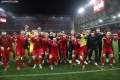 FUTBOLL TIRANA PARTIZANI - Lojtaret e Partizanit festojne fitoren pas ndeshjes se futbollit derbi Partizani - Tirana, 2-0, e vlefshme per Kategorine Superiore, e luajtur ne stadiumin Air Albania ne Tirane.