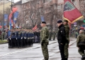 Ushtare te Forcave te Armatosura Kosovare duke parakaluar ne Sheshin Skenderbej ne Prishtine gjate nje ceremonie te organizuar me rastin e 18 vjetorit te pavaresise se Kosoves. Gjate saj, Kurti dhe politikanet e tjere nderuan deshmoret e luftes, veteranet e UÇK-se dhe theksoi se Kosova do te vazhdoje te forcoje sigurine