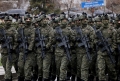 PARADA USHTARAKE PER PAVARESINE E KOSOVES - Ushtare te Forcave te Armatosura Kosovare duke parakaluar ne Sheshin Skenderbej ne Prishtine gjate nje ceremonie te organizuar me rastin e 18 vjetorit te pavaresise se Kosoves. Gjate saj, Kurti dhe politikanet e tjere nderuan deshmoret e luftes, veteranet e UÇK-se dhe theksoi se Kosova do te vazhdoje te forcoje sigurine