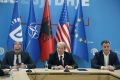 Kryetari i PD, Sali Berisha dhe deputetet Flamur Noka e Gazment Bardhi duke folur gjate nje konference per shtyp nga selia e PD. Gjate saj, ata kane folur mbi aksionin opozitar dhe protestat e ardhshme