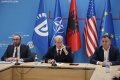 KONFERENCE E PD - Kryetari i PD, Sali Berisha dhe deputetet Flamur Noka e Gazment Bardhi duke folur gjate nje konference per shtyp nga selia e PD. Gjate saj, ata kane folur mbi aksionin opozitar dhe protestat e ardhshme
