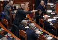 Deputetja Jozefina Topalli duke folur ne nje moment tensioni gjate nje seance parlamentare. Gjate seances, ka pasur debate dhe tension midis perfaqesuesve te mazhorances dhe opozites.