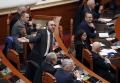 Deputeti Fatmir Mediu duke folur ne nje moment tensioni gjate nje seance parlamentare. Gjate seances, ka pasur debate dhe tension midis perfaqesuesve te mazhorances dhe opozites.