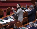 Deputetja Zegjine Caushi duke folur ne nje moment tensioni gjate nje seance parlamentare. Gjate seances, ka pasur debate dhe tension midis perfaqesuesve te mazhorances dhe opozites.