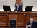Ministri i shtetit per marredheniet me parlamentin, Toni Gogu dhe Ministri i shtetit per marredheniet me parlamentin, Toni Gogu duke folur ne nje moment tensioni gjate nje seance parlamentare. Gjate seances, ka pasur debate dhe tension midis perfaqesuesve te mazhorances dhe opozites.