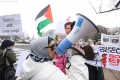 Aktiviste gjate nje proteste jashte Institutit Amerikan te Paqes, ndersa Presidenti Donald Trump po mban takimin inaugurues te Bordit te Paqes ne Washington, DC, SHBA, me 19 shkurt 2026. Presidenti Trump ka mbledhur aleatet per te inauguruar Bordin e Paqes, institucionin e tij te ri per rindertimin ne Gaza. Me shume se njezete udheheqës boterore dhe zyrtare te larte kane ardhur ne Washington per kete takim, përfshire disa nga miqte e Trump me prirje autoritare dhe praktikisht asnje nga vendet demokratike evropiane qe tradicionalisht nenshkruajne nismat e SHBA.