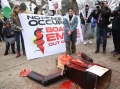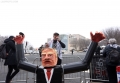 Aktiviste derdhin gjak te rreme mbi nje manekine te Presidentit te SHBA, Donald Trump, gjate nje proteste jashte Institutit te, ndersa Presidenti Donald Trump po mban takimin inaugurues te Bordit te Paqes ne Washington, DC, SHBA, me 19 shkurt 2026. Presidenti Trump ka mbledhur aleatet per te inauguruar Bordin e Paqes, institucionin e tij te ri per rindertimin ne Gaza. Me shume se njezete udheheqes boterore dhe zyrtare te larte kane ardhur ne Washington per kete takim, përfshire disa nga miqte e Trump me prirje autoritare dhe praktikisht asnje nga vendet demokratike evropiane qe tradicionalisht nenshkruajne nismat e SHBA.