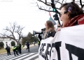 PROTESTE KUNDER BORDIT TE PAQES NE WASHINGTON - Aktiviste gjate nje proteste jashte Institutit Amerikan te Paqes, ndersa Presidenti Donald Trump po mban takimin inaugurues te Bordit te Paqes ne Washington, DC, SHBA, me 19 shkurt 2026. Presidenti Trump ka mbledhur aleatet per te inauguruar Bordin e Paqes, institucionin e tij te ri per rindertimin ne Gaza. Me shume se njezete udheheqës boterore dhe zyrtare te larte kane ardhur ne Washington per kete takim, përfshire disa nga miqte e Trump me prirje autoritare dhe praktikisht asnje nga vendet demokratike evropiane qe tradicionalisht nenshkruajne nismat e SHBA.