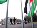 Oficere te policise krijojne nje perimeter sigurie ndersa aktiviste valevisin flamuj palestineze gjate nje proteste jashte Institutit te, ndersa Presidenti Donald Trump po mban takimin inaugurues te Bordit te Paqes ne Washington, DC, SHBA, me 19 shkurt 2026. Presidenti Trump ka mbledhur aleatet per te inauguruar Bordin e Paqes, institucionin e tij te ri per rindertimin ne Gaza. Me shume se njezete udheheqes boterore dhe zyrtare te larte kane ardhur ne Washington per kete takim, përfshire disa nga miqte e Trump me prirje autoritare dhe praktikisht asnje nga vendet demokratike evropiane qe tradicionalisht nenshkruajne nismat e SHBA.