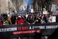 PROTESTE KUNDER LUFTES NE IRAN PRANE SHTEPISE SE BARDHE NE WASHINGTON DC - Demonstrues me pankarta kunder luftes ne Iran, gjate nje proteste prane Shtepise se Bardhe ne Washington, DC, SHBA, me 28 shkurt 2026. Shtetet e Bashkuara dhe Izraeli nisen ate qe ky i fundit e quajti nje fushate vendimtare dhe te pashembullt kunder Iranit, i cila u kundepergjij me nje bresheri raketash ne disa prej qyteteve kryesore anembane Lindjes se Mesme.