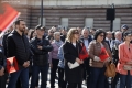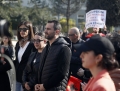 Adriatik Lapaj duke folur para kryeministrise gjate nje proteste te organizuar nga levizja Shqiperia Behet. Protestuesit kane kerkuar doreheqjen e Kryeministrit Edi Rama.
